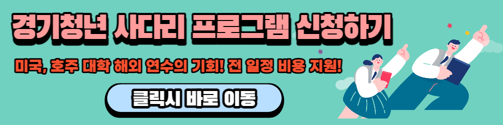 2차 면접심사에는 면접관이 직접 심사하므로 본인의 열정과 포부, 도전정신을 보여주면 좋겠죠? 특히 경기청년 사다리 프로그램은 현재의 어학 능력보다는 열정과 잠재력 등을 기준으로 선발한다고 하니 어학능력이 부족하다고 생각되는 경기청년들도 포기하지 않고 도전해보면 좋겠습니다!